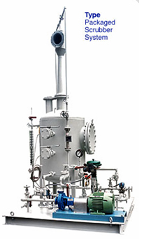 Packaged Scrubber System is a completely "packaged", movable gas scrubber separator system that is especially designed for use in pilot plants, laboratories, or temporary locations in full size processing plants. Packaged Scrubber System uses water or other liquid to clean large quantities of objectionable gases that are inherent in most laboratories or processing applications.